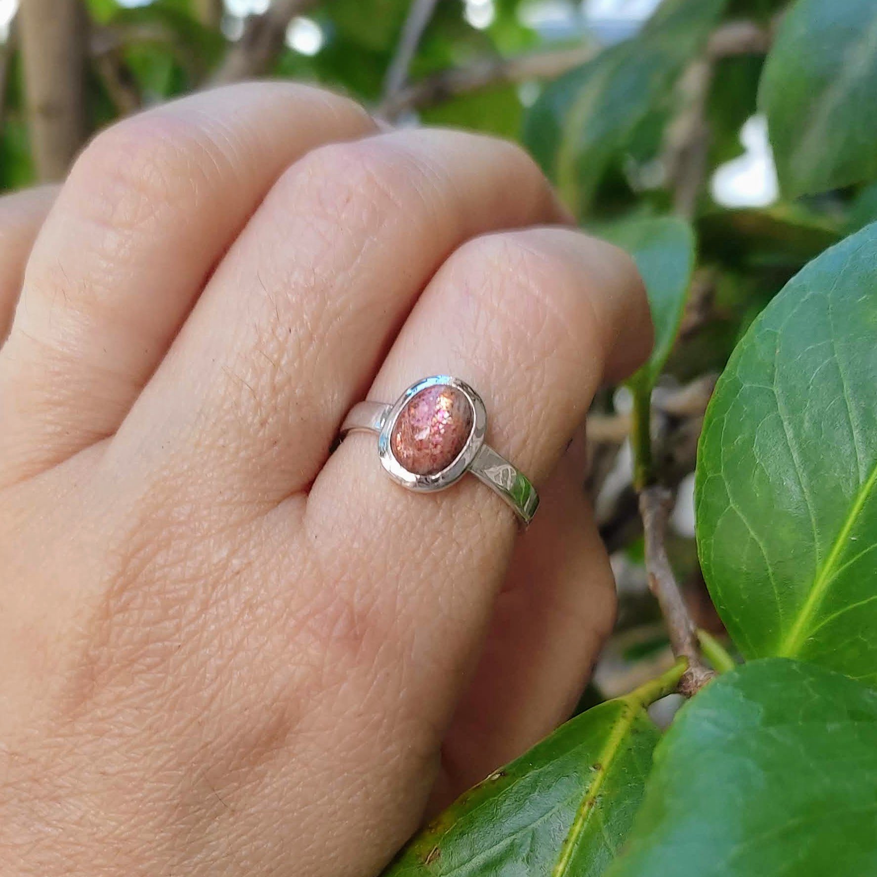 Este anillo de Plata 950 fue diseñado para capturar esa luz interior: su estructura minimalista enmarca la piedra sin competir con sus destellos cobrizos. Una joya que potencia tu lado más auténtico.