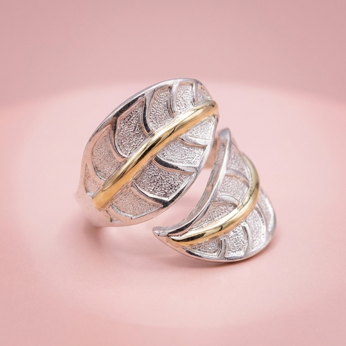 Anillo Hoja en Plata 925 y Double (enchapado) de Oro